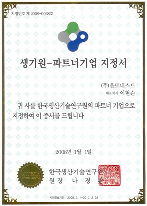 인증 | 생기원-파트너기업지정서 페이지 정보 작성자 관리자 작성일10-10-15 09:17 조회17,936회 댓글0건 관련링크 이전글 다음글 목록 본문 생기원-파트너기업지정서 댓글목록 등록된 댓글이 없습니다. 이전글 다음글 목록