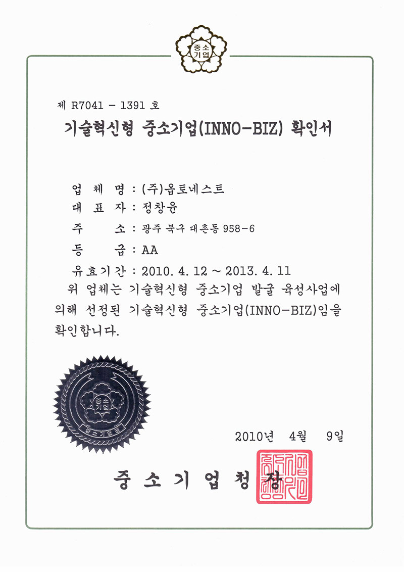 인증 | 기술혁신형 중소기업 확인서 페이지 정보 작성자 관리자 작성일10-10-15 09:18 조회17,367회 댓글0건 관련링크 이전글 다음글 목록 본문 기술혁신형 중소기업 확인서 댓글목록 등록된 댓글이 없습니다. 이전글 다음글 목록