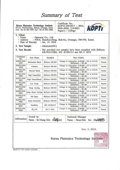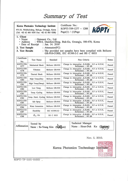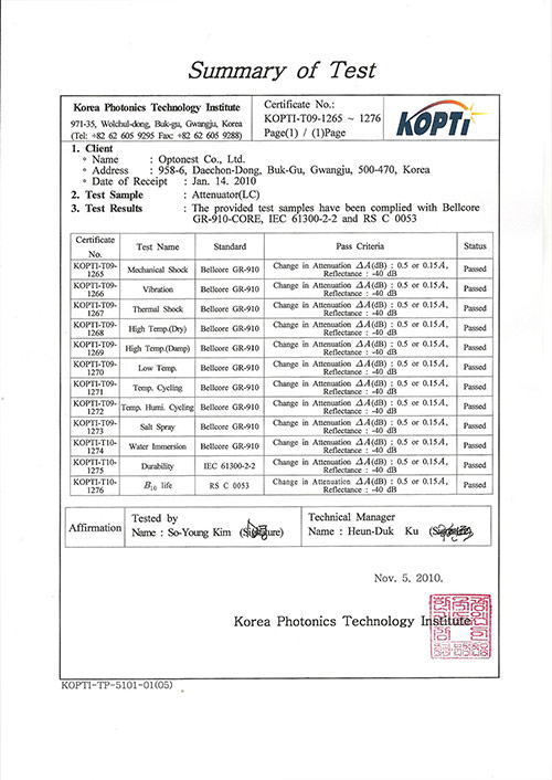 TEST 항목 : Mechanical Shock, Vibration, Thermal Shock 등.