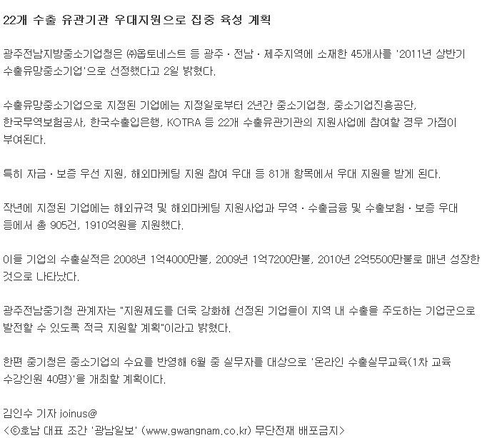 인증 | 수출유망중소기업 재 지정 페이지 정보 작성자 관리자 작성일11-06-14 09:25 조회16,545회 댓글0건 관련링크 이전글 다음글 목록 본문 수출유망중소기업 재 지정 댓글목록 등록된 댓글이 없습니다. 이전글 다음글 목록